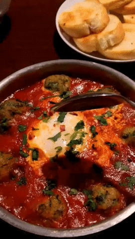 .A Middle Eastern dish that consists of eggs, tomato sauce and green onions