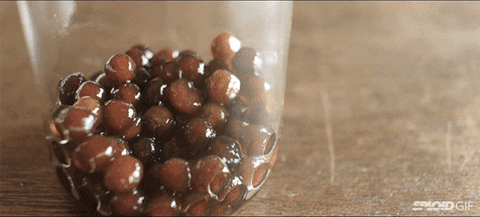 Tapioca is a spongy black pearl. Tapioca is made from Cassava starch, sweet potato, and brown sugar. Tapioca is mostly used in Bubble Tea (Boba Tea).