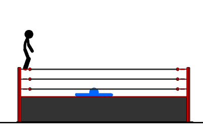 When a man is about to climax, he pulls out, climbs onto the top rope, performs a 450 splash into the gash and busts a nut.