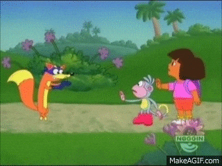 At some point in the show, the sneaky "Swiper the Fox" tries (and sometimes succeeds) to steal something LEAST VALUABLE to Dora-- like a flower--and if he does, he throws it in a bush or something. When he comes close to Dora, she points her finger at him like a homo and screams SWIPER NO SWIPING at him. Then swiper snaps his finger and says awwwwwww man! and runs away into the forrest like a pansy. If any kid tried this in real life, like pointing their finger at some gangstas and screams swiper no swiping!, they'll get shot or something.